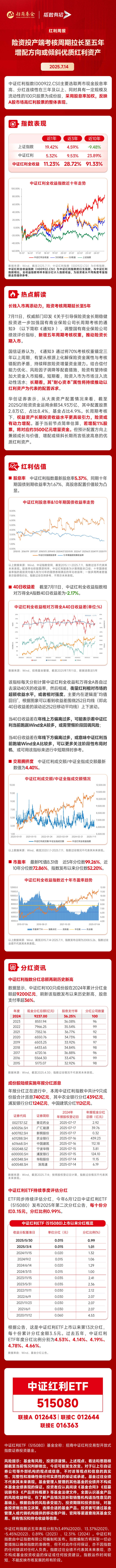 消息面上,高股息资产再迎政策助力。7月11日,权威部门印发《关于引导保险资金长期稳健投资进一步加强国有商业保险公司长周期考核的通知》(以下简称《通知》),调整国有商业保险公司绩效评价指标,新增五年周期考核权重,推动险资长期入市。